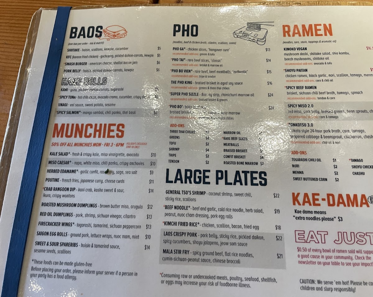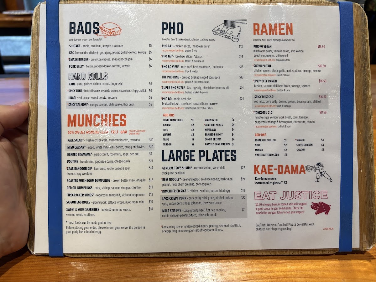 As you dive deeper into the menu, the Large Plates offer true comfort food. The Beef Noodle is particularly noteworthy—a bowl of cold rice noodles topped with succulent beef, crispy egg rolls, and a drizzle of nuoc cham dressing, it’s a wholesome dish that satisfies with every savory sip.